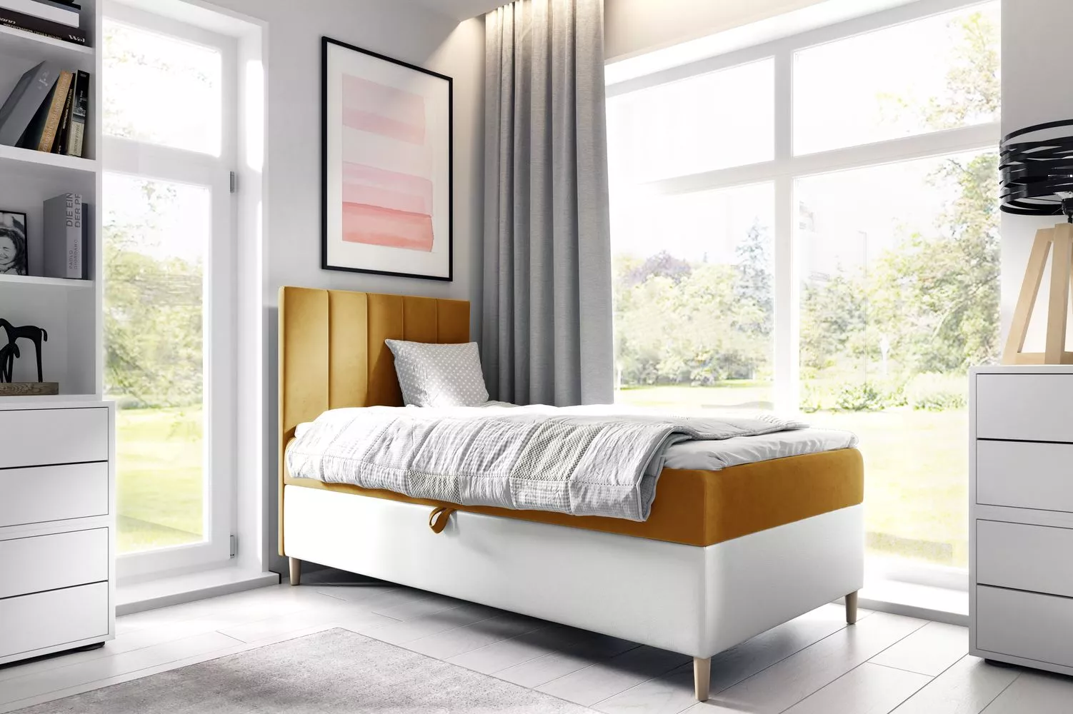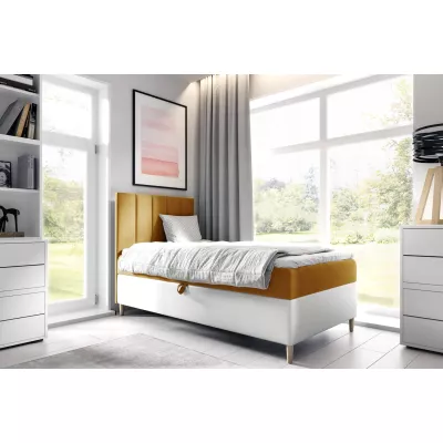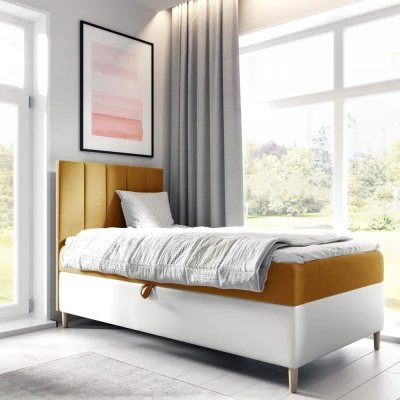 Kontinentální postel 90x200 MIREN 1 - hořčicová / bílá, otevírání z levé strany + topper ZDARMA