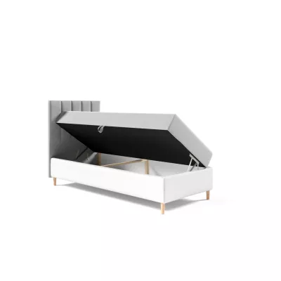 Kontinentální postel 90x200 MIREN 1 se hodí do všech studentských pokojů. Čalouněné čelo zamezí poškrábání a zašpinění zdi. Nechybí ani praktický úložný prostor otevíraný z levé strany postele.