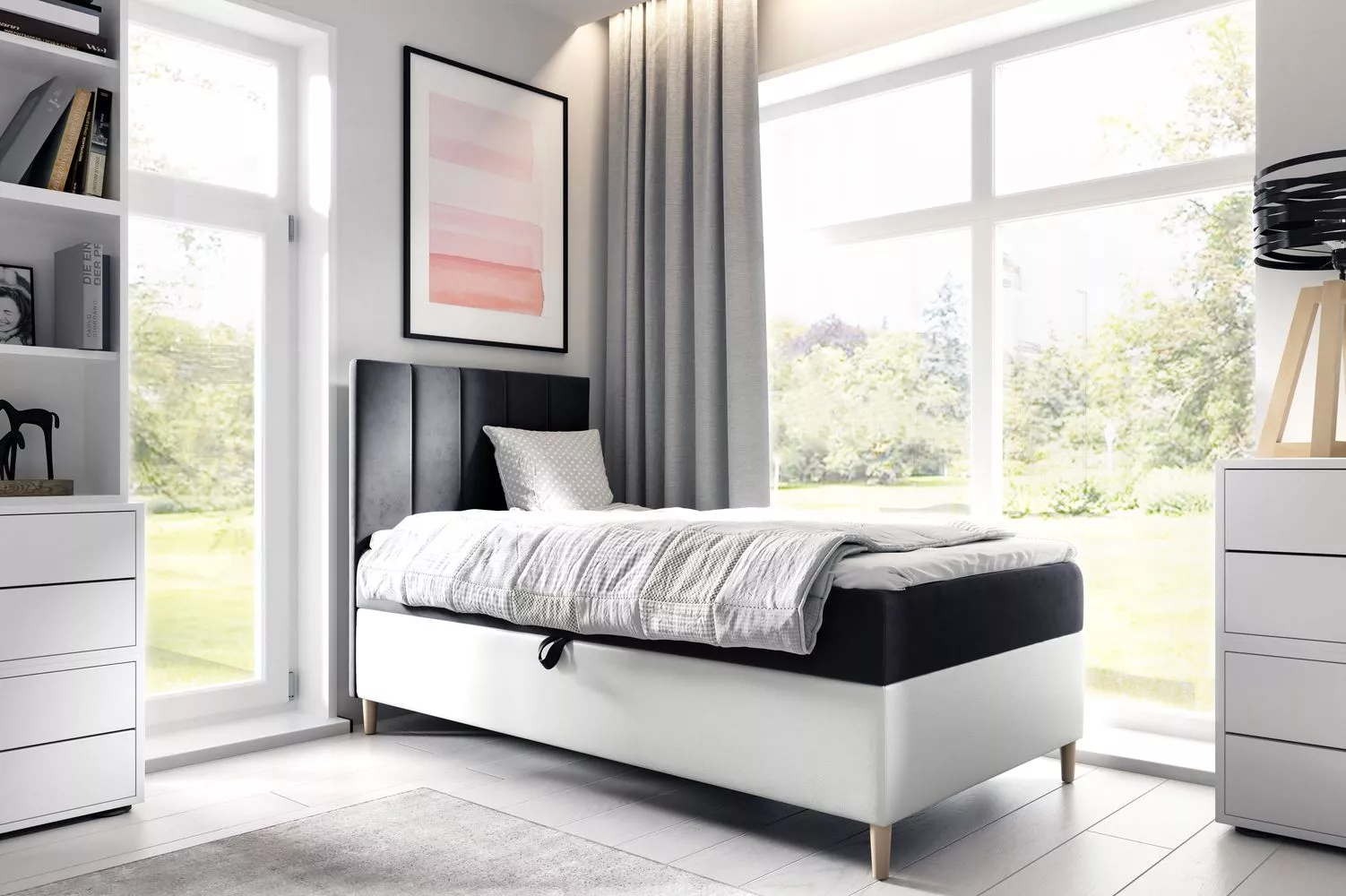Kontinentální postel 90x200 MIREN 1 - černá / bílá, otevírání z levé strany + topper ZDARMA