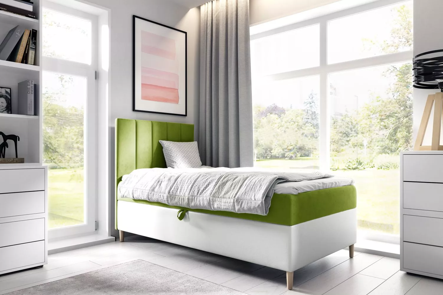 Kontinentální postel 100x200 MIREN 1 - zelená / bílá, otevírání z levé strany + topper ZDARMA
