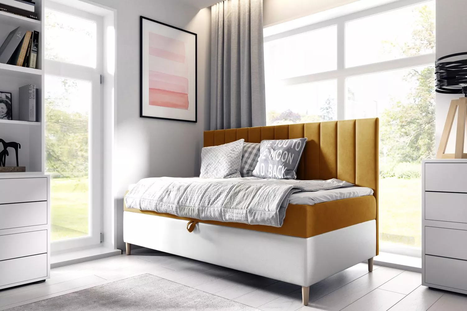 Kontinentální postel 80x200 MIREN 2 - hořčicová / bílá, otevírání z levé strany + topper ZDARMA