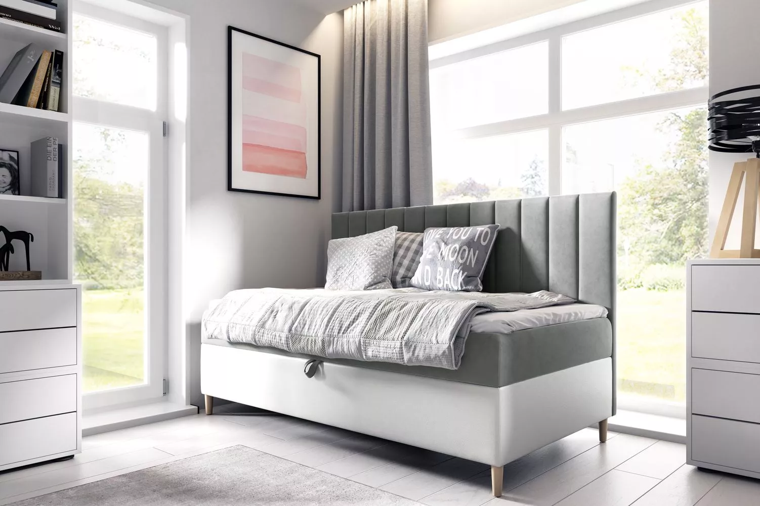 Kontinentální postel 80x200 MIREN 2 - šedá / bílá, otevírání z levé strany + topper ZDARMA