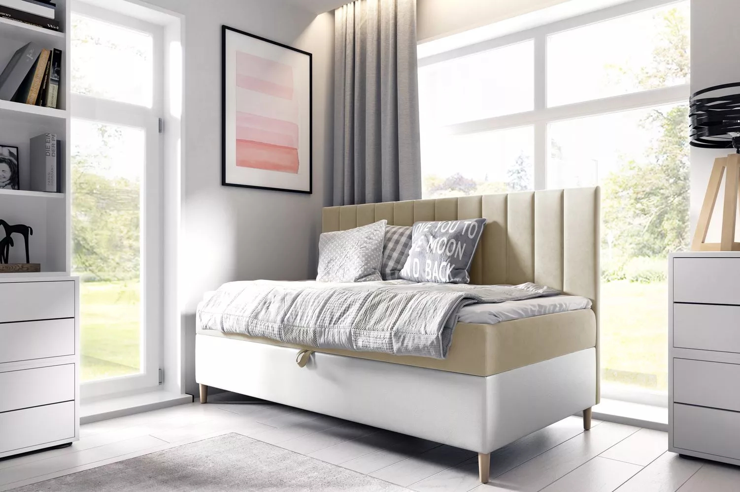 Kontinentální postel 100x200 MIREN 2 - béžová / bílá, otevírání z levé strany + topper ZDARMA