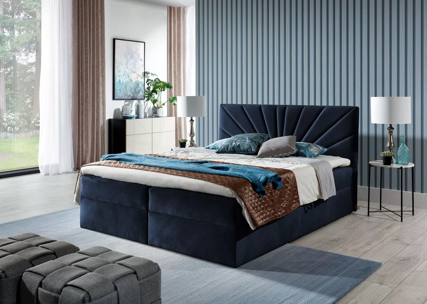 Kontinentální postel 180x200 IVANA 4 - tmavě modrá + topper ZDARMA