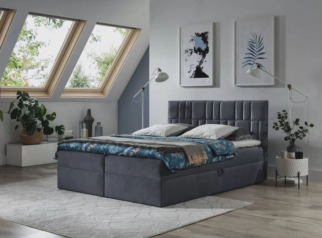 Kontinentální postel 120x200 IVANA 3 - tmavě šedá + topper ZDARMA