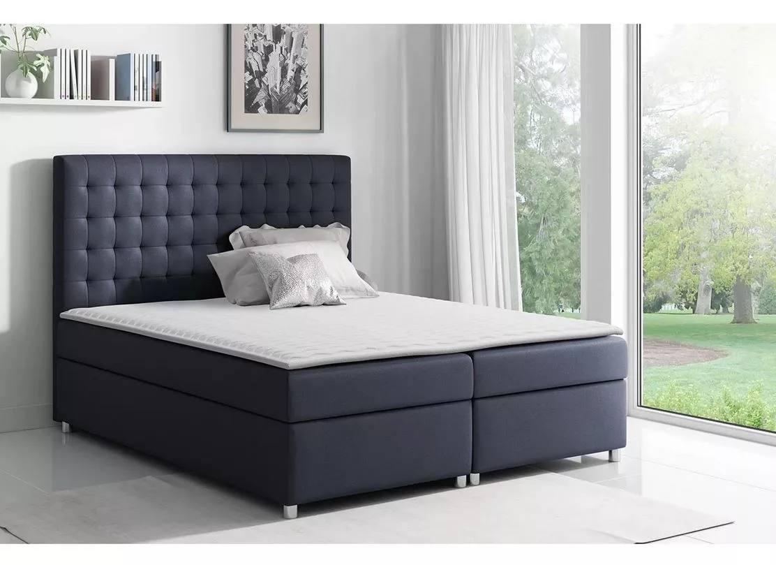 Hotelová manželská postel 200x200 SARITA - tmavá modrá + topper ZDARMA