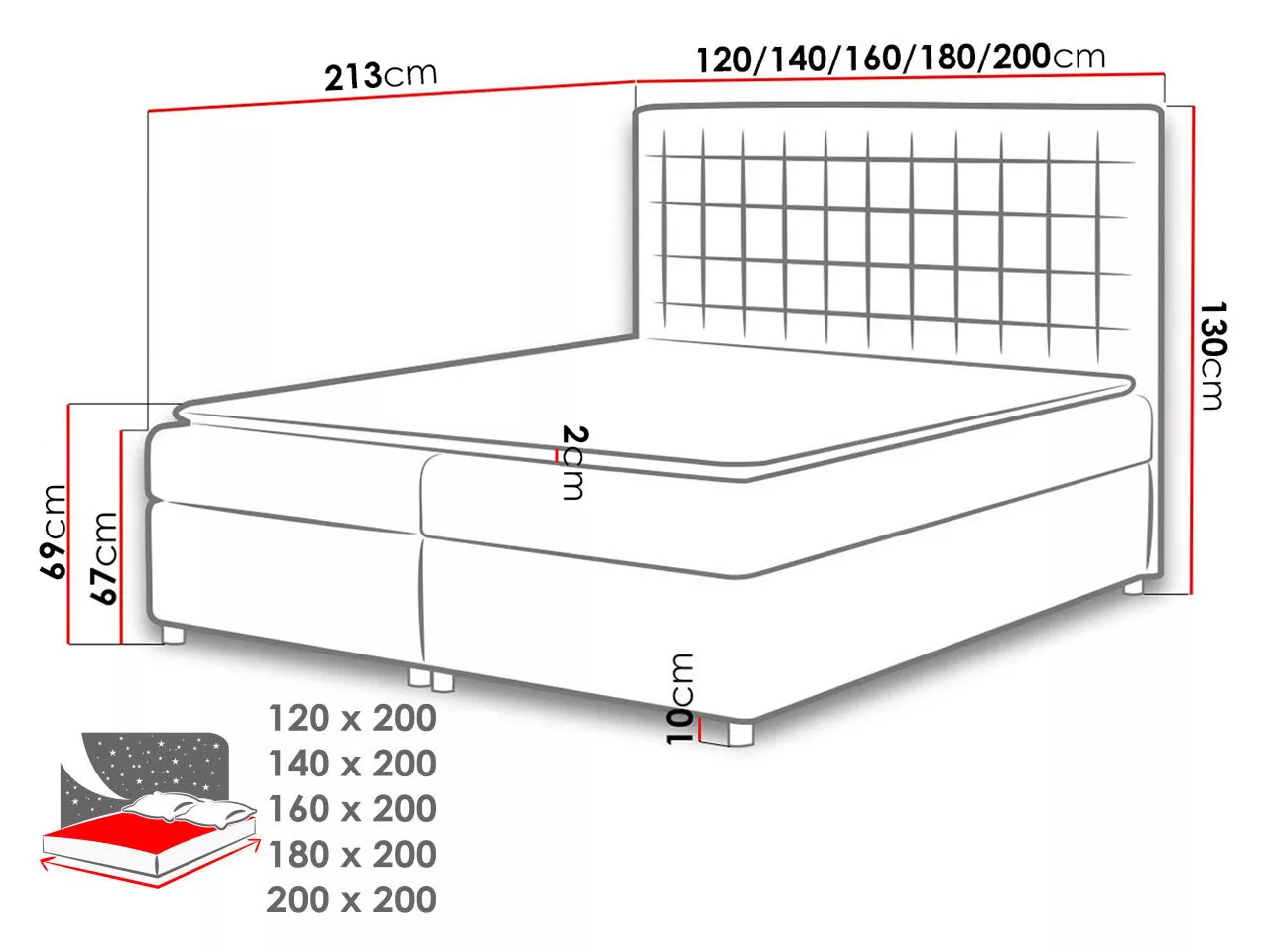 Hotelová manželská postel SARITA o spací ploše 200x200 cm je vybavená kvalitní matrací, která se dokonale přizpůsobí přirozeným křivkám vašeho těla a topperem, který zvyšuje pocit pohodlí a relaxace. Výška ložné plochy 67 cm výrazně usnadňuje vstávání či ulehání do postele, a proto je vhodná i pro osoby s omezenou pohyblivostí. Součástí postele je také dvoukomorový úložný prostor.