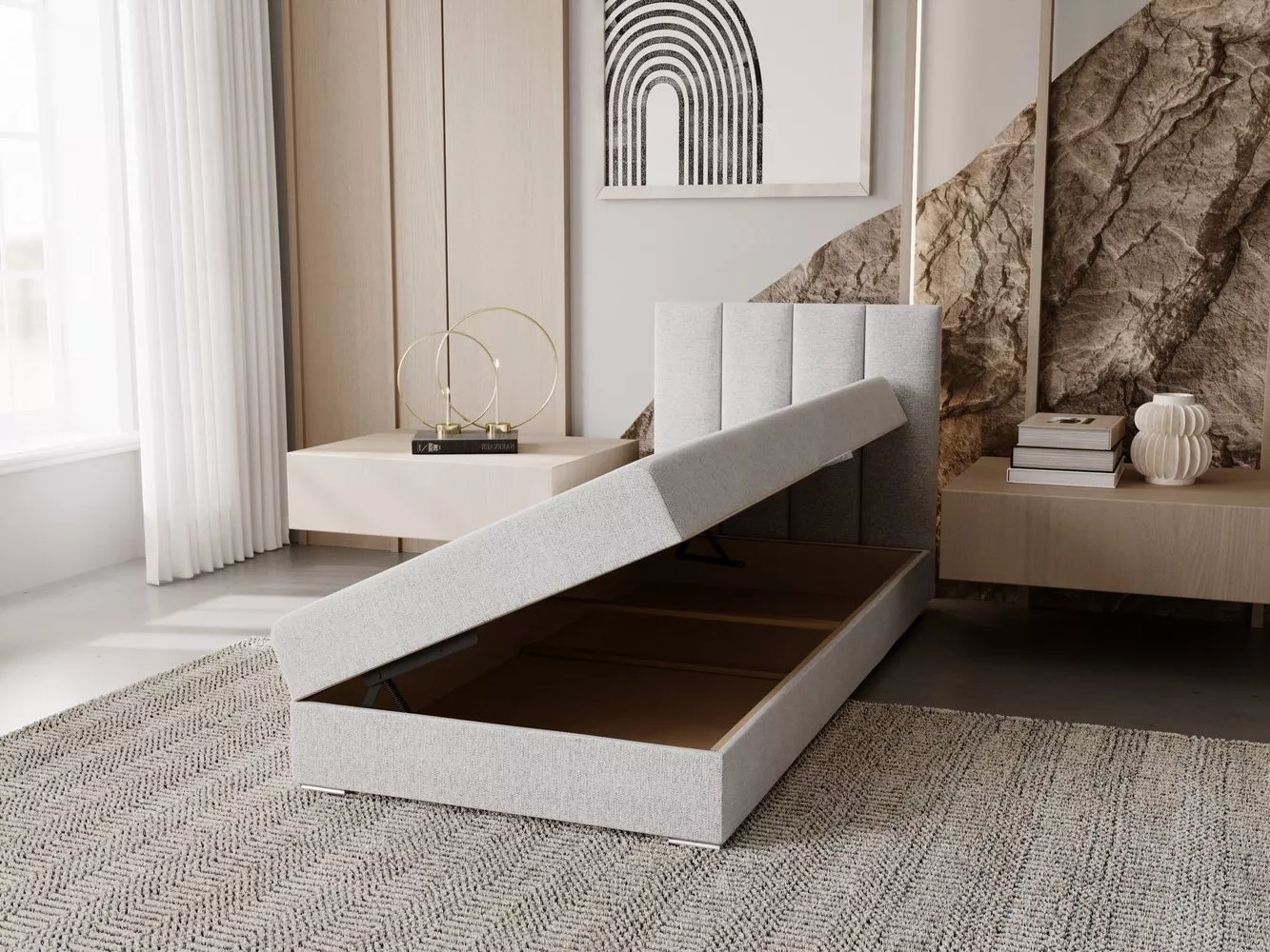 Čalouněná postel 80x200 ELSIE 3 s úložným prostorem - šedá, pravé provedení