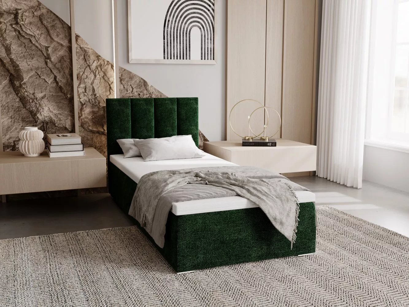 Čalouněná postel 90x200 ELSIE 3 s úložným prostorem - zelená, levé provedení