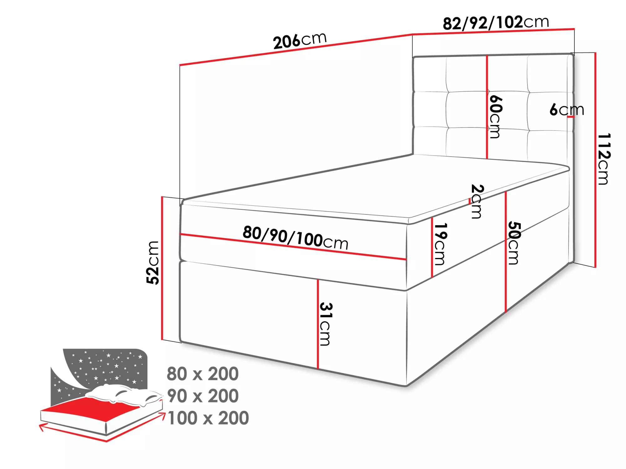 Dopřejte si kvalitní a ničím nerušený odpočinek, který vám přinese postel CAROLA. Jednolůžková postel o spací ploše 100x200 cm je vybavena kvalitní matrací a topperem, které se postarají o zdravý a pohodlný spánek. Vysoké prošívané čelo zajišťuje pohodlnou opěru zad, a zároveň chrání stěnu před znečištěním. Samozřejmostí je dvoukomorový úložný prostor.
