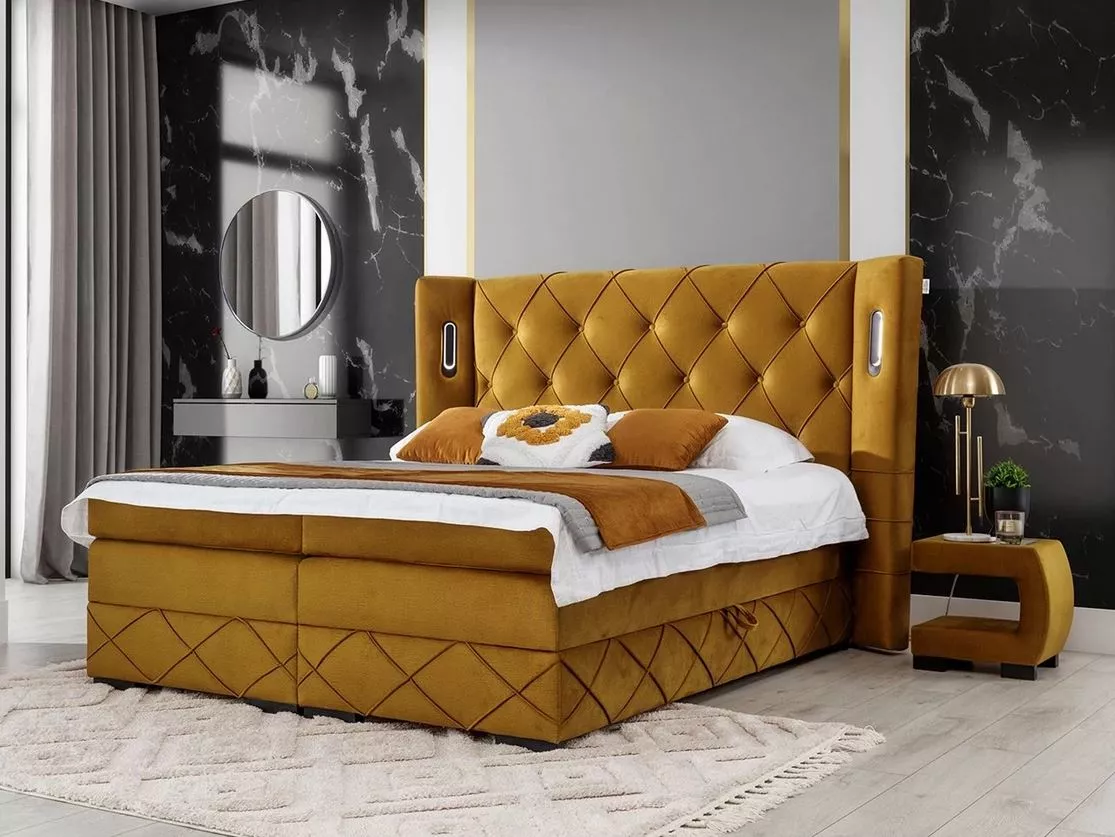Hotelová manželská postel 160x200 BUELTON - hořčicová + topper ZDARMA