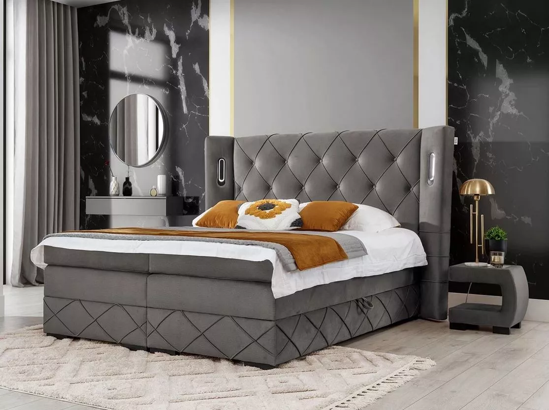 Hotelová postel BUELTON přináší dokonalý luxus a pohodlí, díky kterým se váš spánek stane opravdovým potěšením. Nabízí praktický úložný prostor na obou stranách postele a středně tvrdou matraci doplněnou topperem z hypoalergenních materiálů. Elegantní čelo spolu s LED osvětlením vytváří stylovou dominantu každé ložnice.