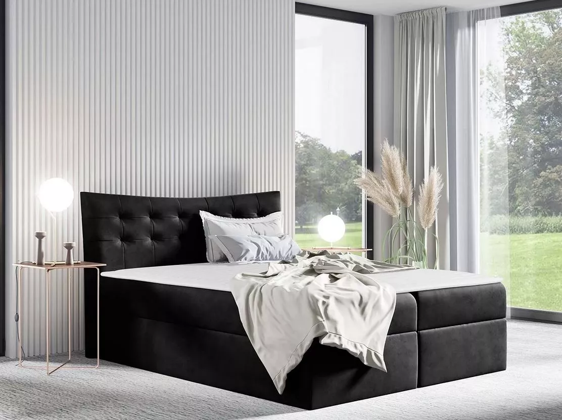 Hotelová dvojlůžková postel 160x200 PONCE - černá + topper ZDARMA