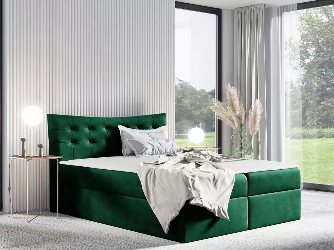 Hotelová dvojlůžková postel 200x200 PONCE - zelená + topper ZDARMA