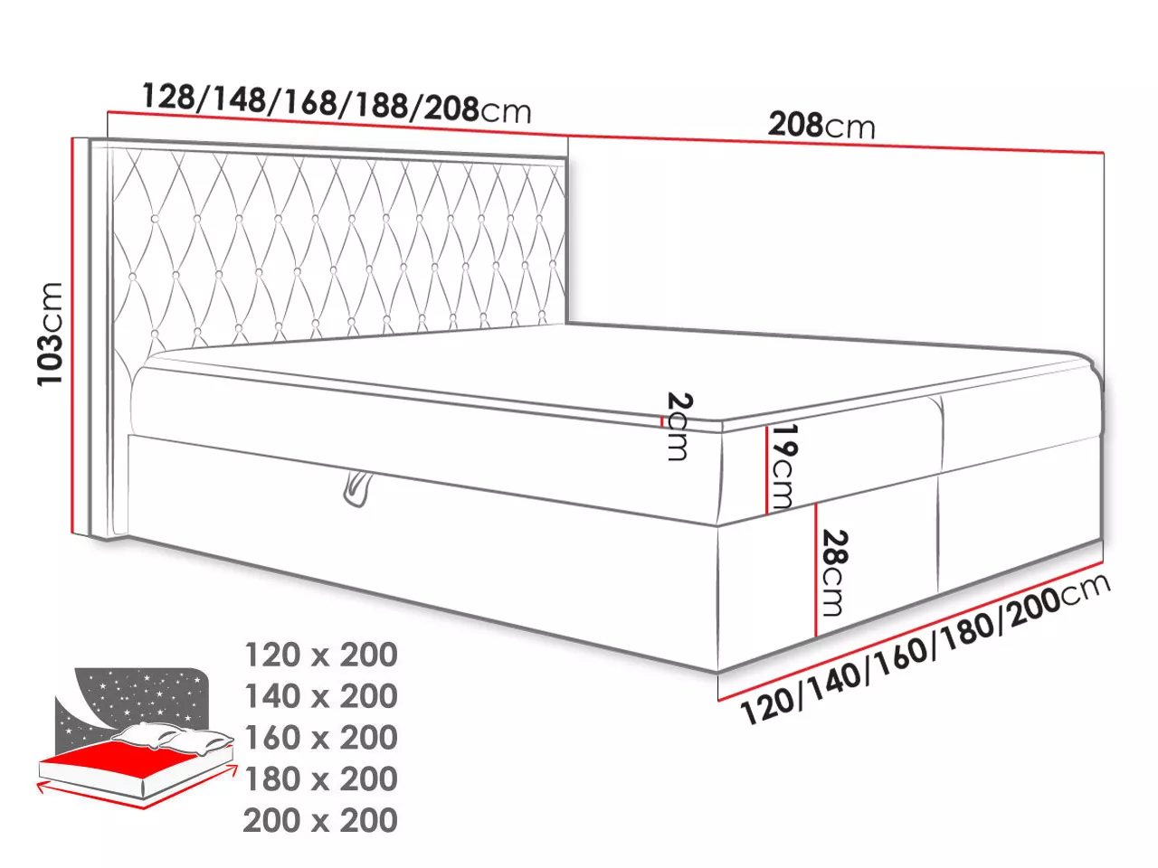 - ložná plocha: 140x200 cm