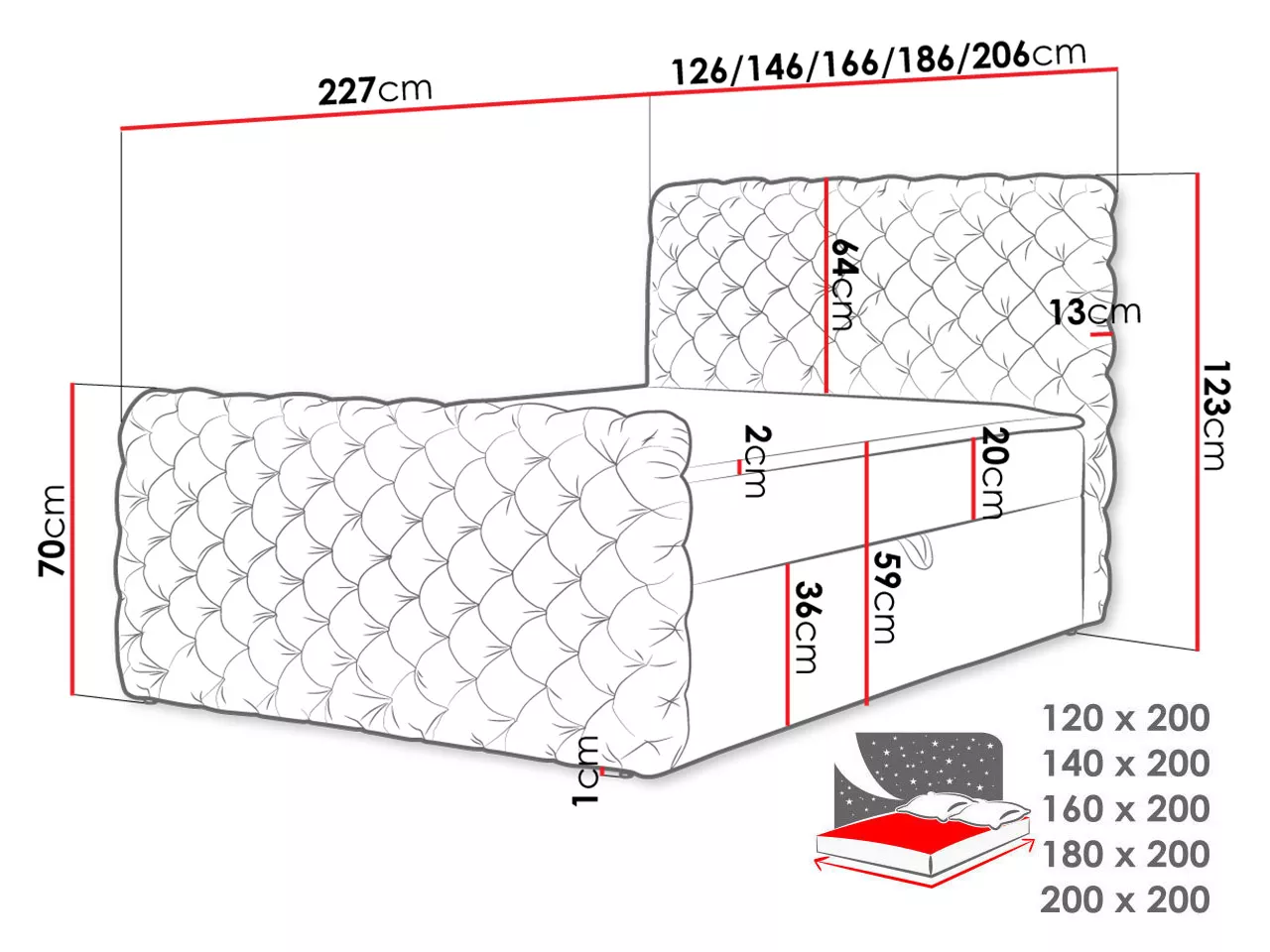 - výška ložné plochy: 59 cm