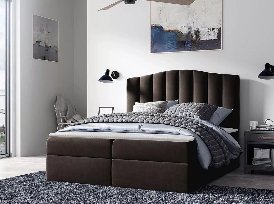 Boxspringová manželská postel 180x200 REYA - čokoládová + topper ZDARMA