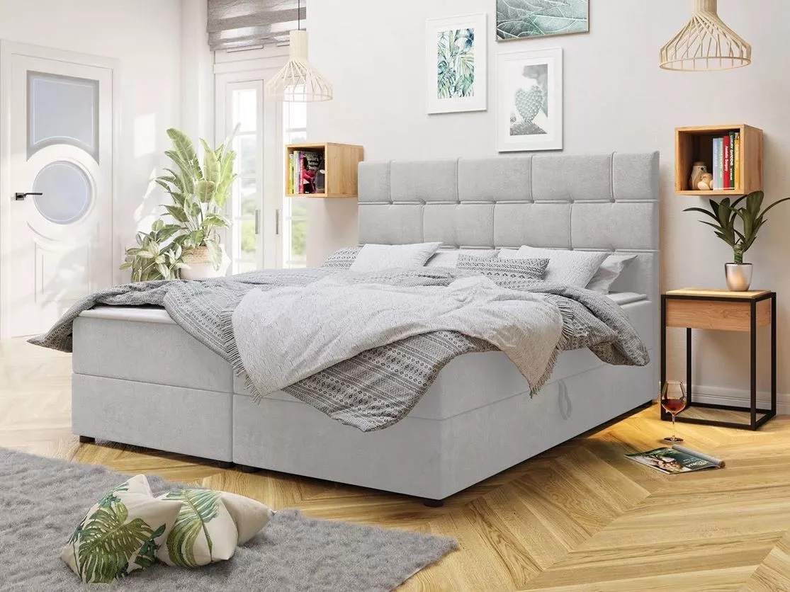 Boxspringová manželská postel 140x200 FIGIEL - šedá + topper ZDARMA