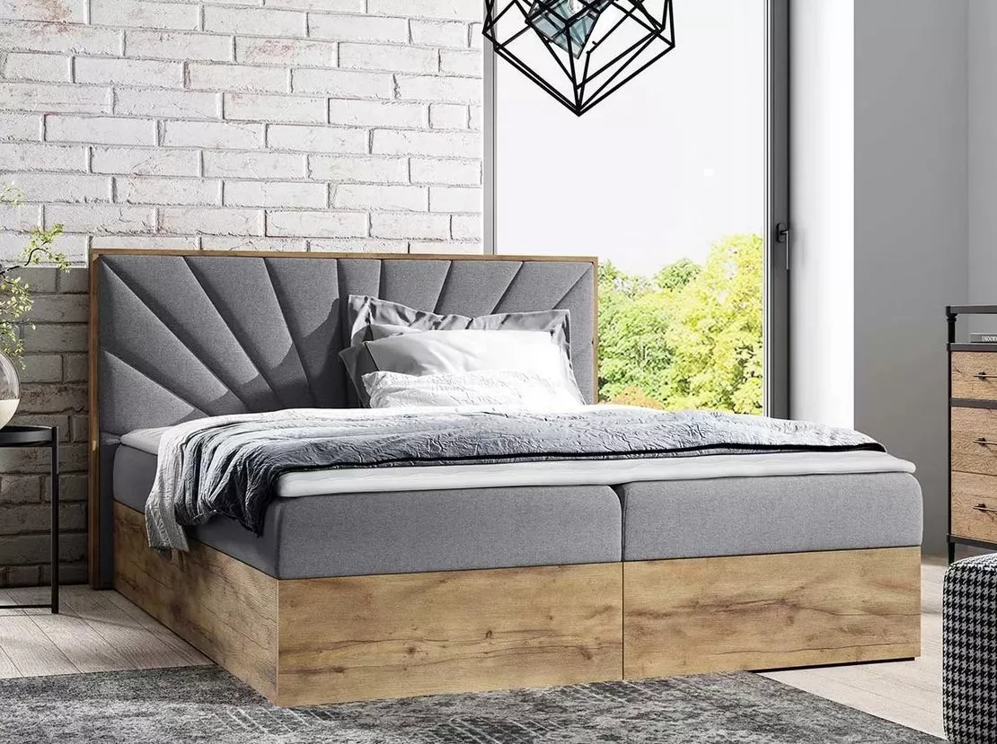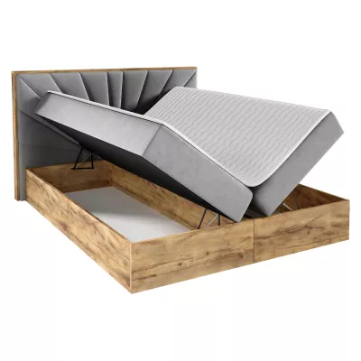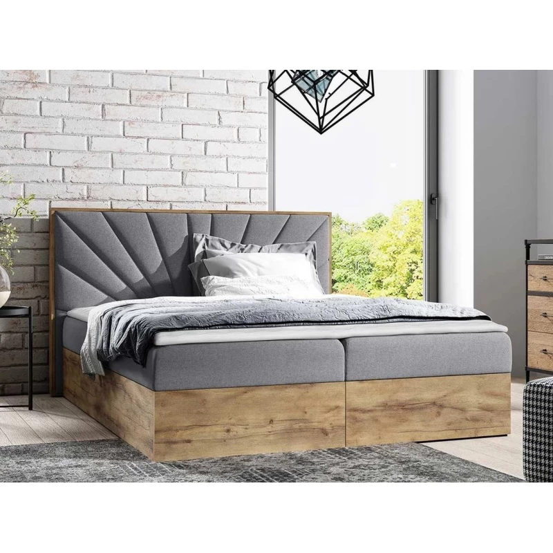 Kontinentální dvojlůžková postel 160x200 BELFLOWER 7 - dub lancelot / popelavá + topper ZDARMA