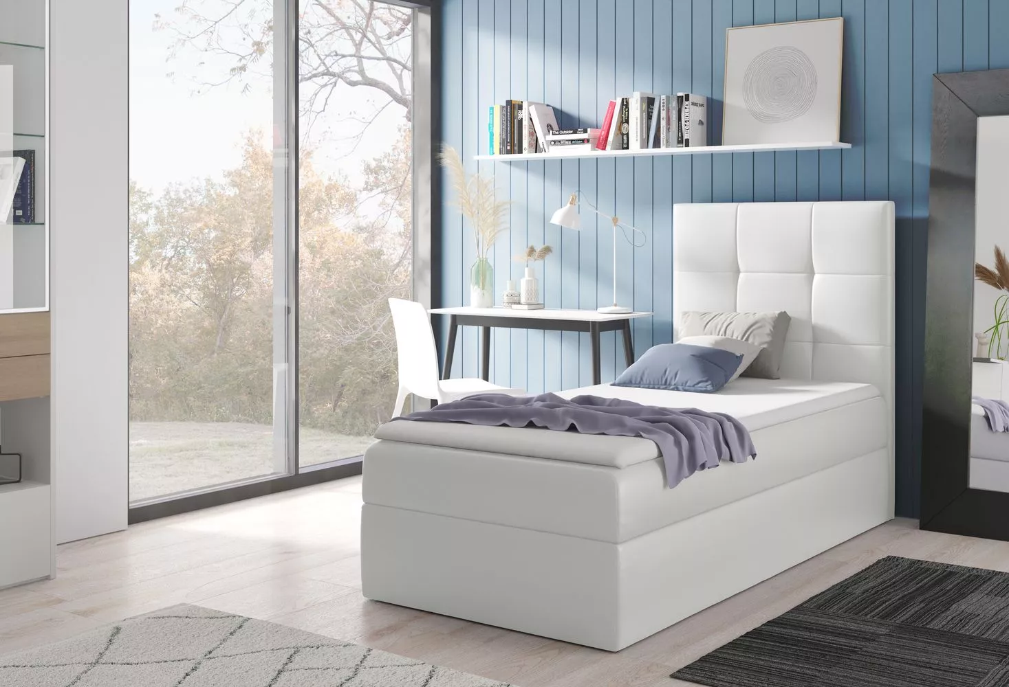 VÝPRODEJ - Čalouněná jednolůžková postel REBECCA - 80x200, bílá + topper ZDARMA