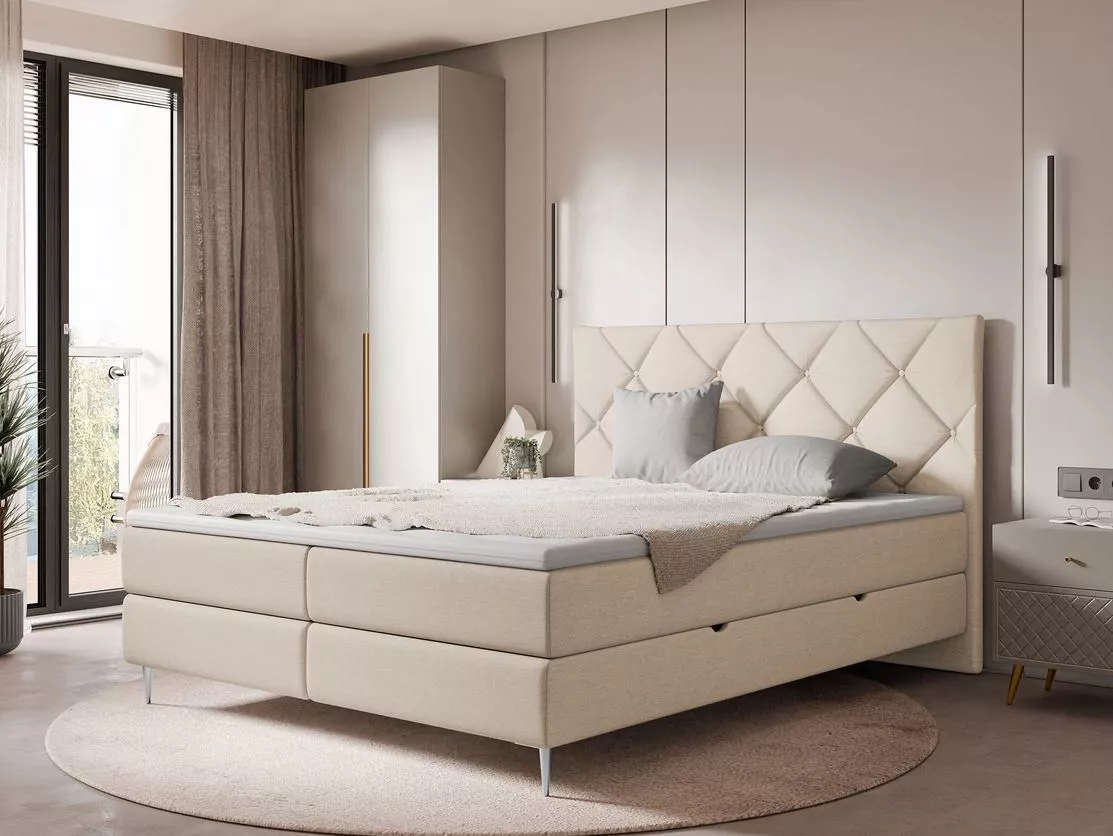 Kontinentální dvojlůžková postel 140x200 ARMADO - béžová / stříbrné nožky