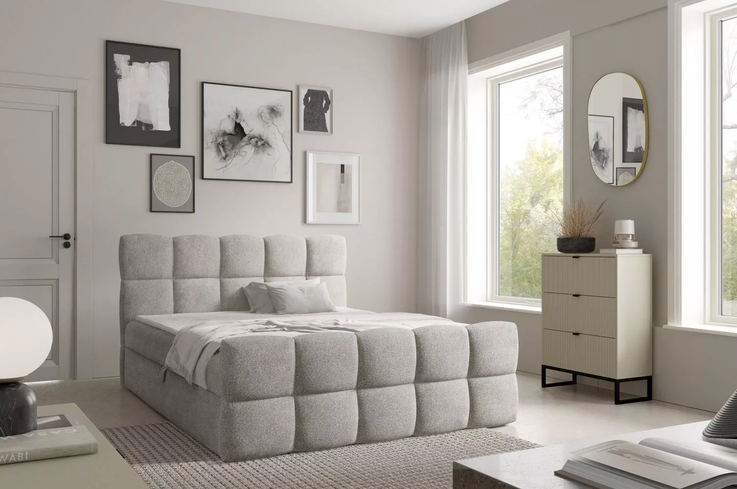 Kontinentální postel 120x200 ISEMBARD se hodí do moderních pokojů. Čelo postele slouží jako opora zad, která zajišťuje pohodlný odpočinek vsedě, pokud si například chcete v posteli číst knihu nebo vypít ranní kávu. Úložný prostor je otevíraný z boku.