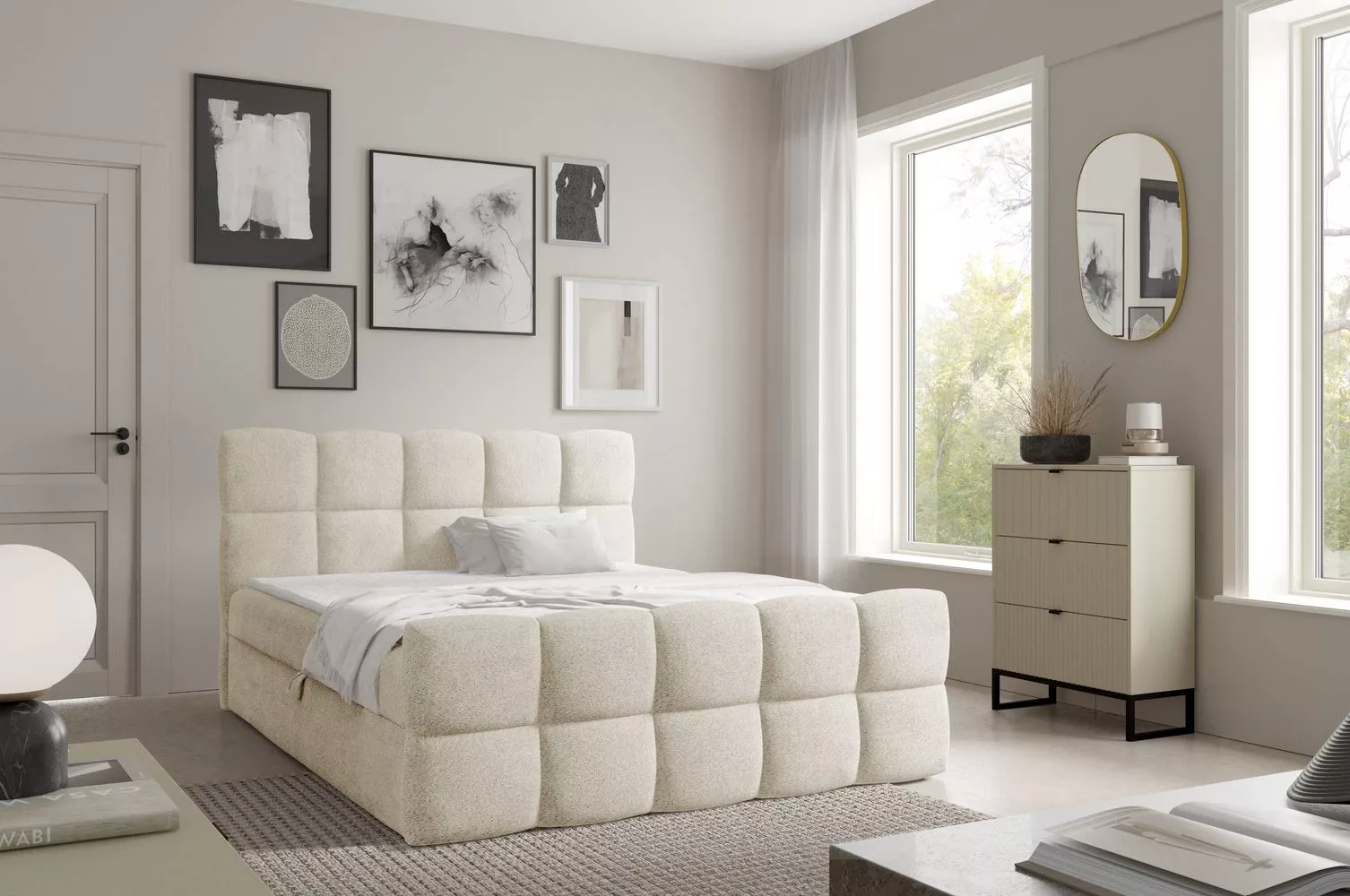 Kontinentální postel 200x200 ISEMBARD - smetanová + topper