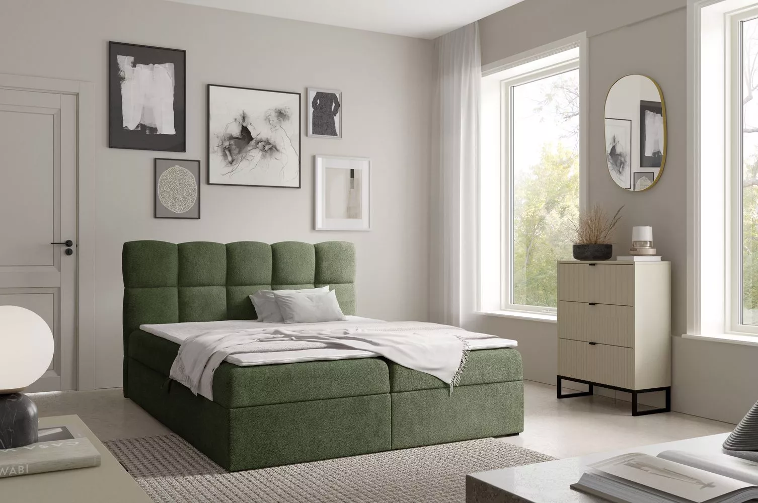 Kontinentální postel 160x200 KLONDIKE - láhvově zelená + topper