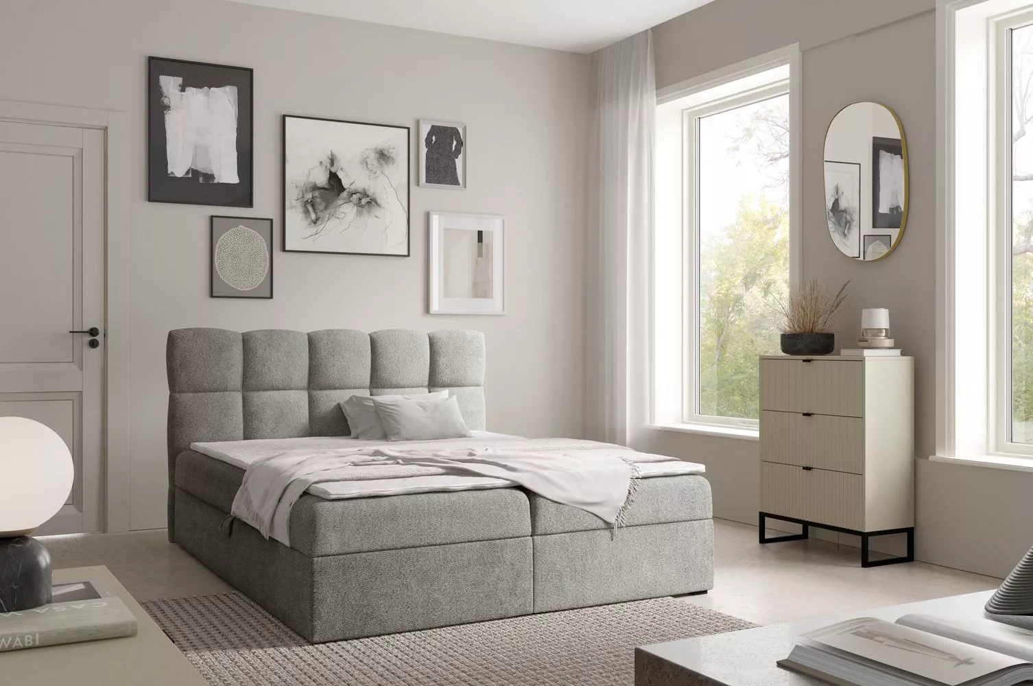 Kontinentální postel 180x200 KLONDIKE - světle šedá + topper