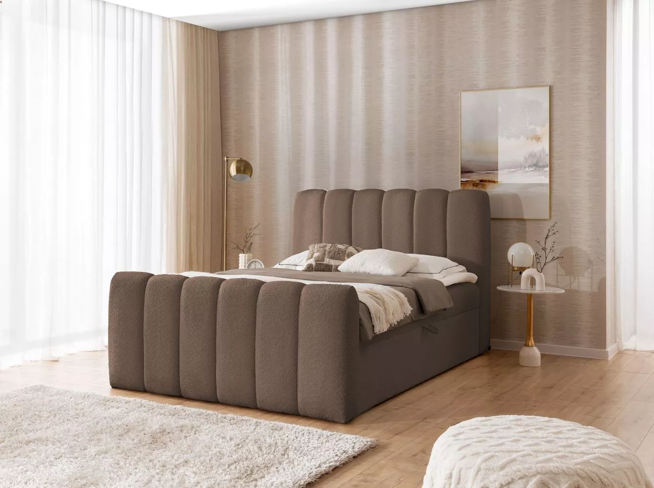 Boxspringová postel 140x200 SEMINOLE se hodí do moderních pokojů či ložnic. Čelo postele slouží jako opora zad, která zajišťuje pohodlný odpočinek vsedě, pokud si například chcete v posteli číst knihu nebo vypít ranní kávu. Úložný prostor je otevíraný z boku.