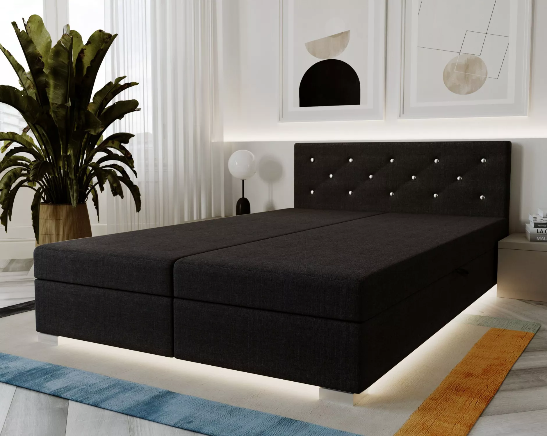 Součástí postele je rošt a matrace. LED osvětlení vyobrazené na fotografii není součástí balení.