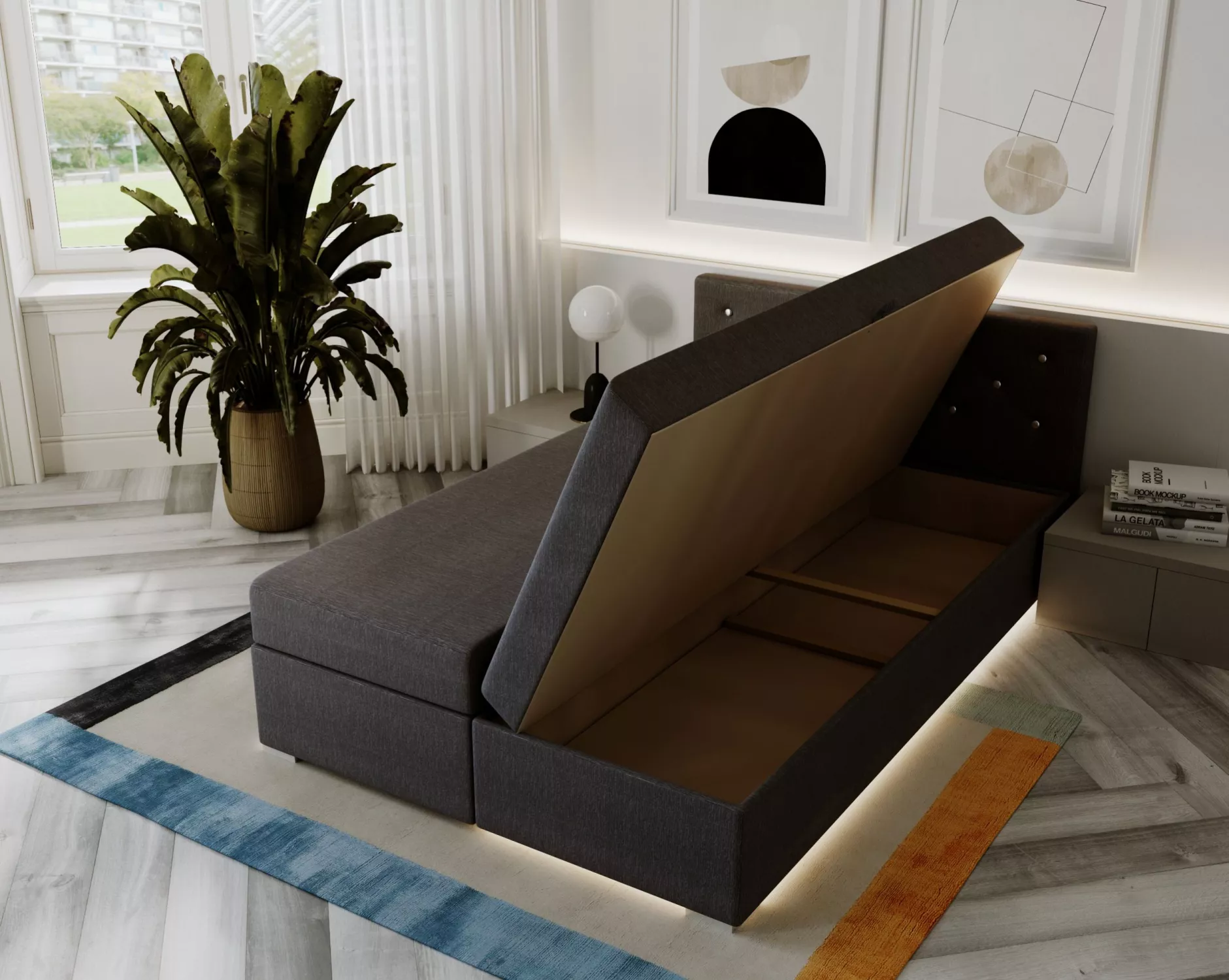 Americká postel 140x200 ROSIE 4 svým designem dokonale zapadne do interiéru každé ložnice. Díky 2 praktickým úložným prostorům a pohodlné matraci zajišťuje komfort při používání i při spánku. Designové čelo zamezí poškrábání a zašpinění zdi.