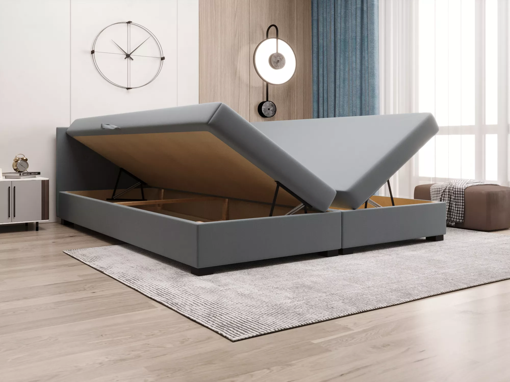 Manželská postel s úložným prostorem 180x200 ROSIE 11 svým designem dokonale zapadne do interiéru každé ložnice. Díky 2 praktickým úložným prostorům a pohodlné matraci zajišťuje komfort při používání i při spánku. Designové čelo zamezí poškrábání a zašpinění zdi.