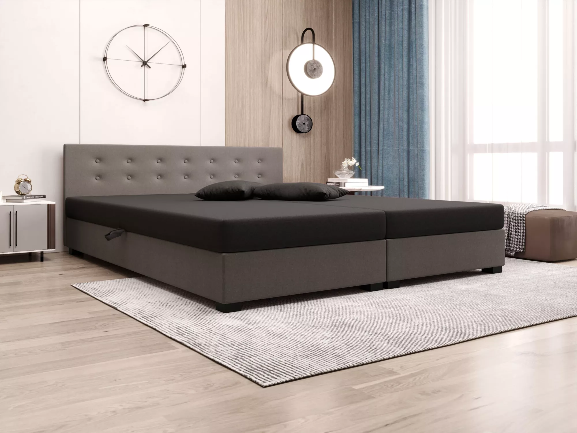 Manželská postel s úložným prostorem 140x200 ROSIE 12 - tmavě šedá / tmavě hnědá