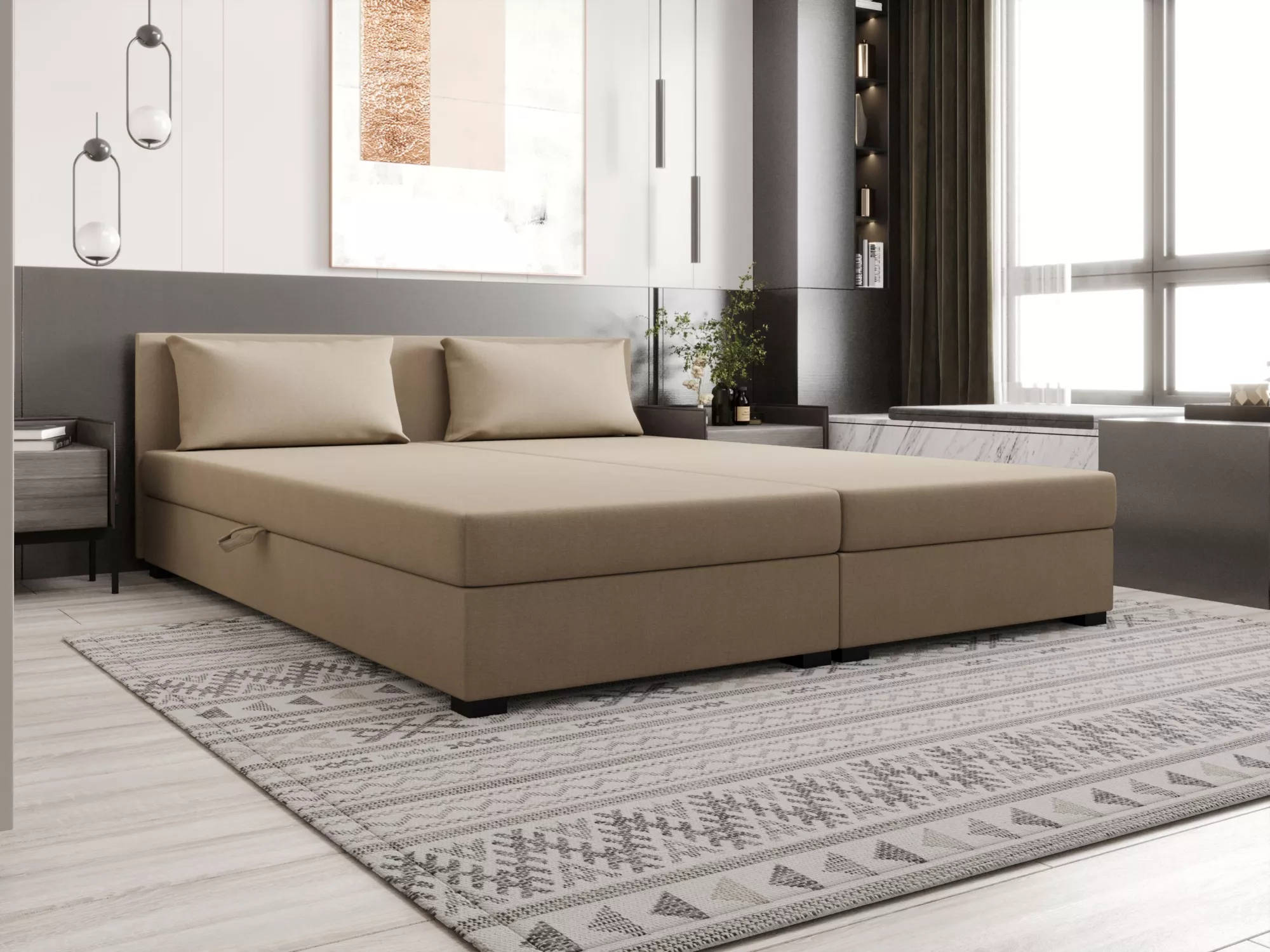 Kontinentální manželská postel 180x200 ROSIE 13 - světle hnědá