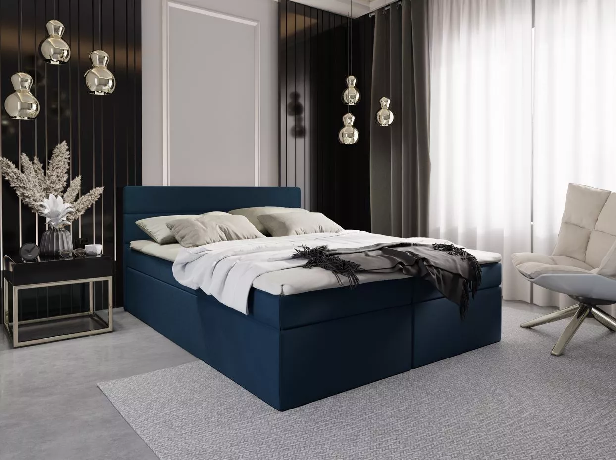Kontinentální manželská postel s úložným prostorem 160x200 KAMELA - modrá