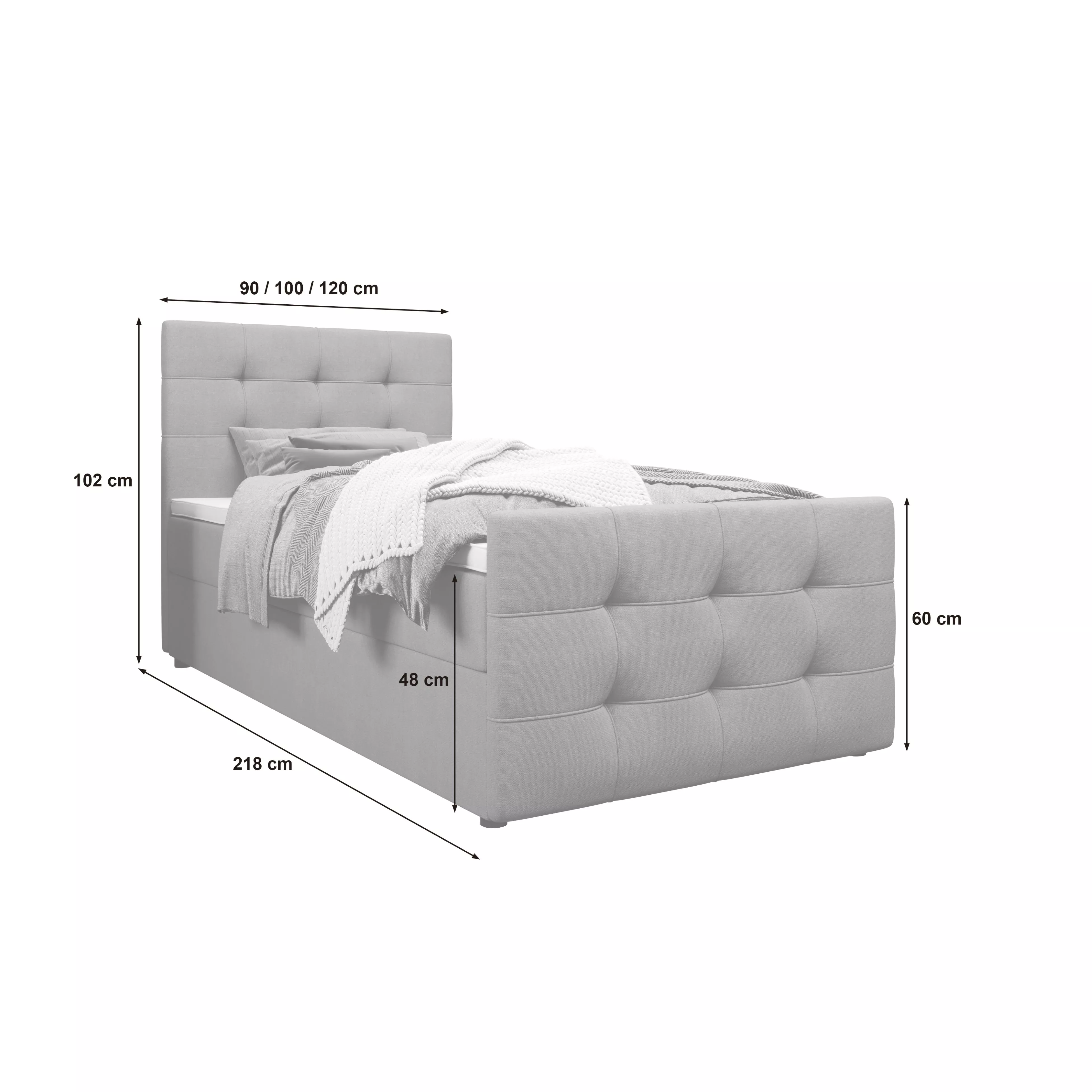 Kontinentální postel 120x200 VASILISA 5 skvěle zapadne do všech moderních studentských pokojů. Čalouněné čelo zamezí poškrábání a zašpinění zdi.