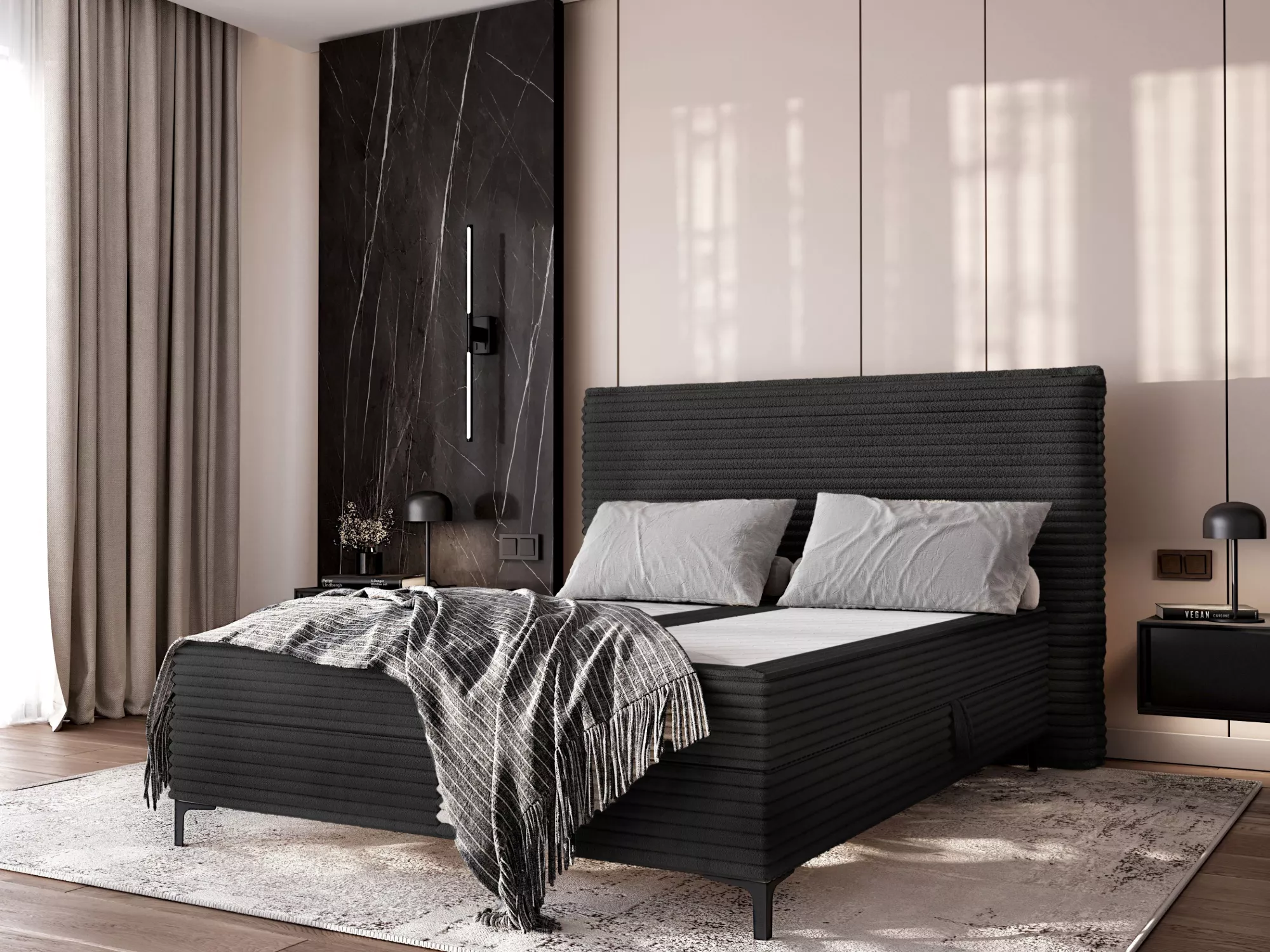 Kontinentální postel 160x200 MADRONA má vysoké čalouněné čelo, které zabrání zašpinění a poškrábání zdi. Postel disponuje úložným prostorem pro uložení ložního prádla nebo sezónního oblečení. Příjemná potahová látka zpříjemní každodenní používání.