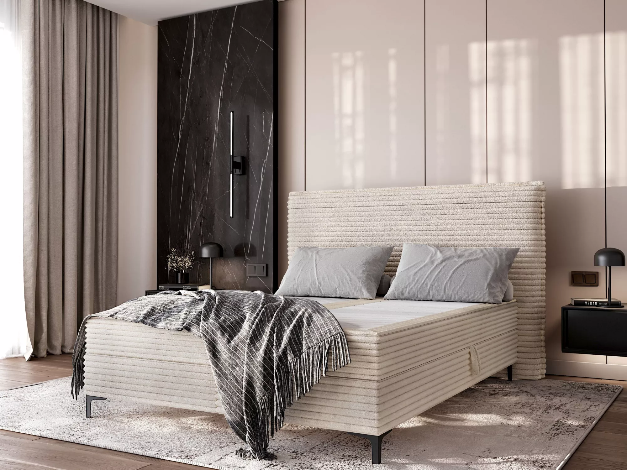 Kontinentální postel 180x200 MADRONA má vysoké čalouněné čelo, které zabrání zašpinění a poškrábání zdi. Postel disponuje úložným prostorem pro uložení ložního prádla nebo sezónního oblečení. Příjemná potahová látka zpříjemní každodenní používání.