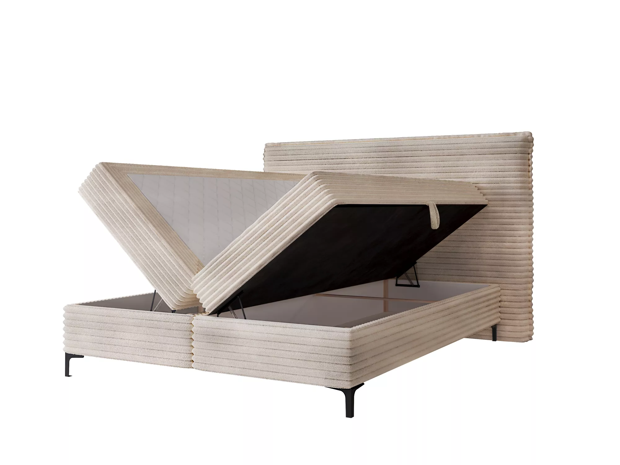 Kontinentální postel 180x200 MADRONA má vysoké čalouněné čelo, které zabrání zašpinění a poškrábání zdi. Postel disponuje úložným prostorem pro uložení ložního prádla nebo sezónního oblečení. Příjemná potahová látka zpříjemní každodenní používání.