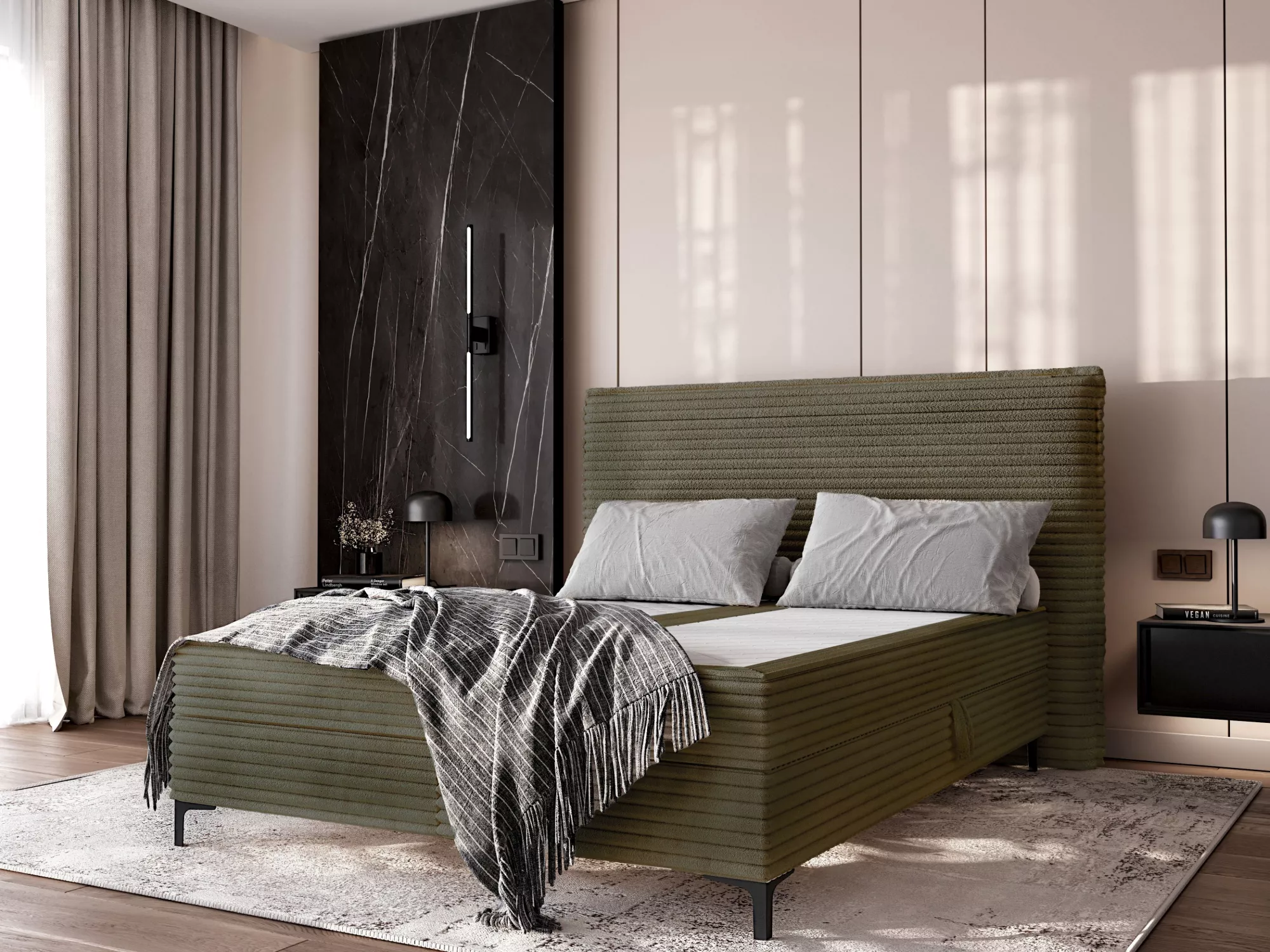 Kontinentální postel 200x200 MADRONA má vysoké čalouněné čelo, které zabrání zašpinění a poškrábání zdi. Postel disponuje úložným prostorem pro uložení ložního prádla nebo sezónního oblečení. Příjemná potahová látka zpříjemní každodenní používání.