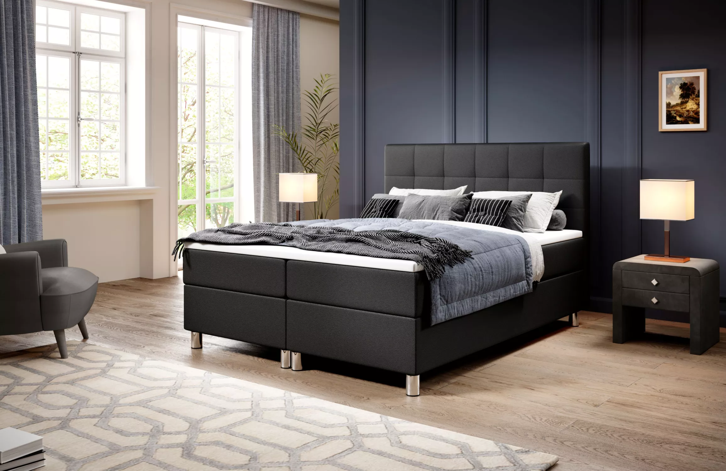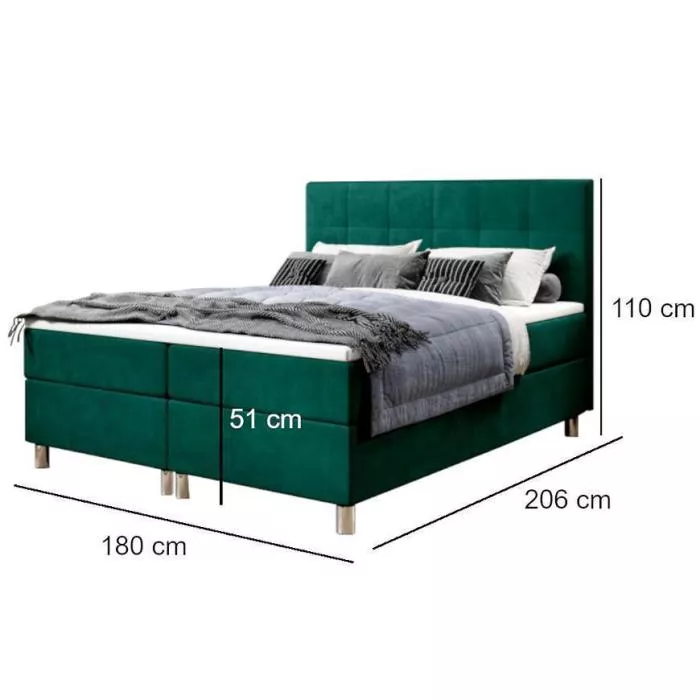 Americká postel 180x200 RAQUEL 3 zaujme svým designově prošívaným čelem, které zabrání poškrábání a zašpinění zdi. Postel skvěle zapadne do všech ložnic. Vysoké kovové nožky dodávají posteli eleganci.