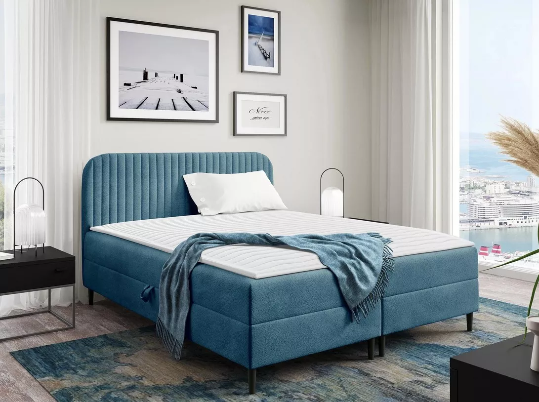 Kontinentální manželská postel 140x200 NEWSOMS 1 - modrá + topper ZDARMA