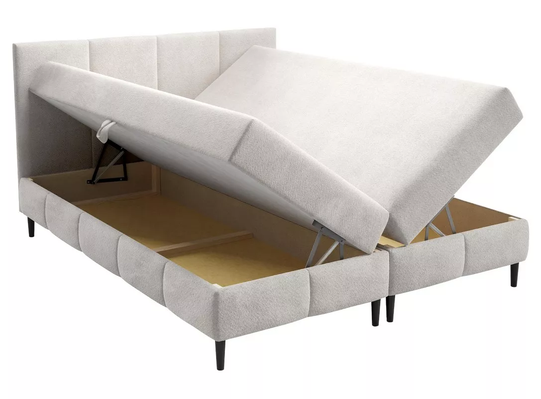 Hotelová postel NEWSOMS 2 kombinuje moderní vzhled s maximálním pohodlím pro kvalitní spánek. Měkké čalounění s celoplošným stylovým prošíváním a výrazným opěrným čelem dodává ložnici luxusní charakter. Úložný prostor rozdělený do sekcí umožňuje přehledné uložení polštářů, přikrývek a dek.