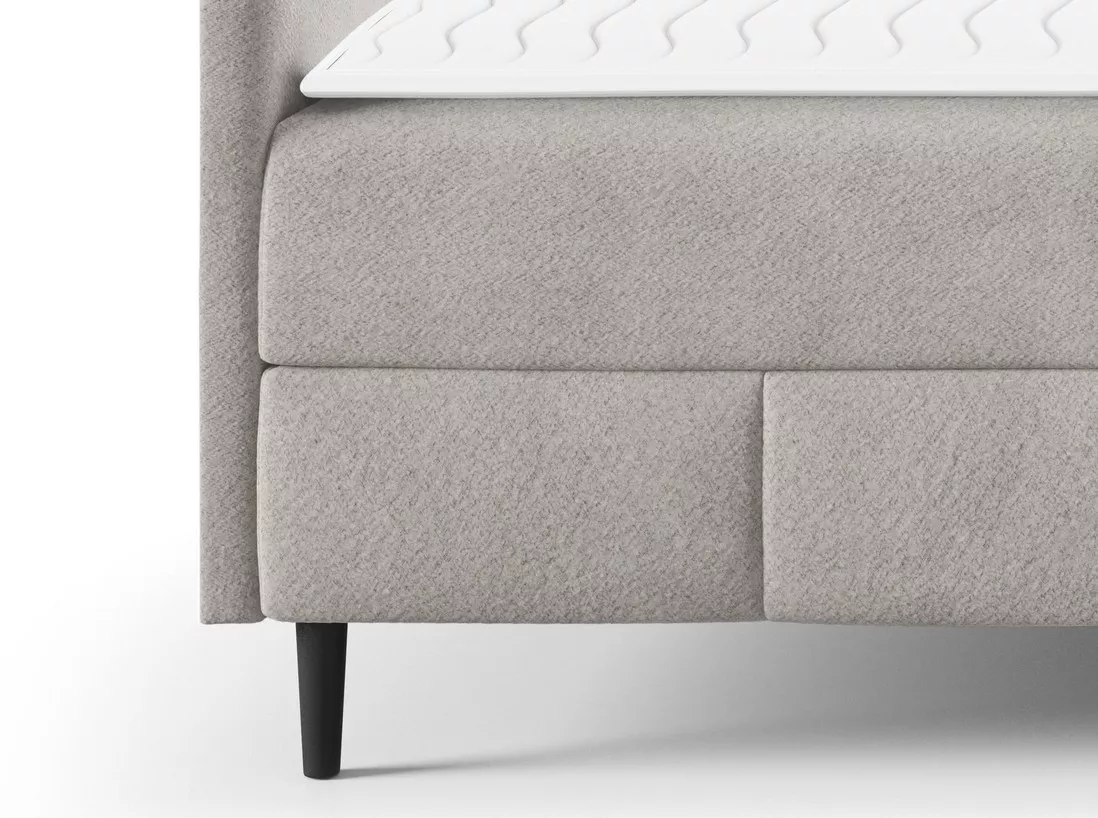 Hotelová postel NEWSOMS 2 kombinuje moderní vzhled s maximálním pohodlím pro kvalitní spánek. Měkké čalounění s celoplošným stylovým prošíváním a výrazným opěrným čelem dodává ložnici luxusní charakter. Úložný prostor rozdělený do sekcí umožňuje přehledné uložení polštářů, přikrývek a dek.