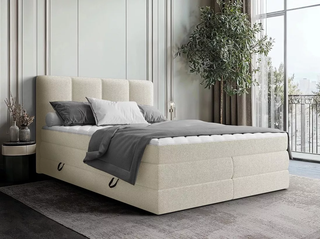 Boxspringová manželská postel 180x200 PULASKI - béžová