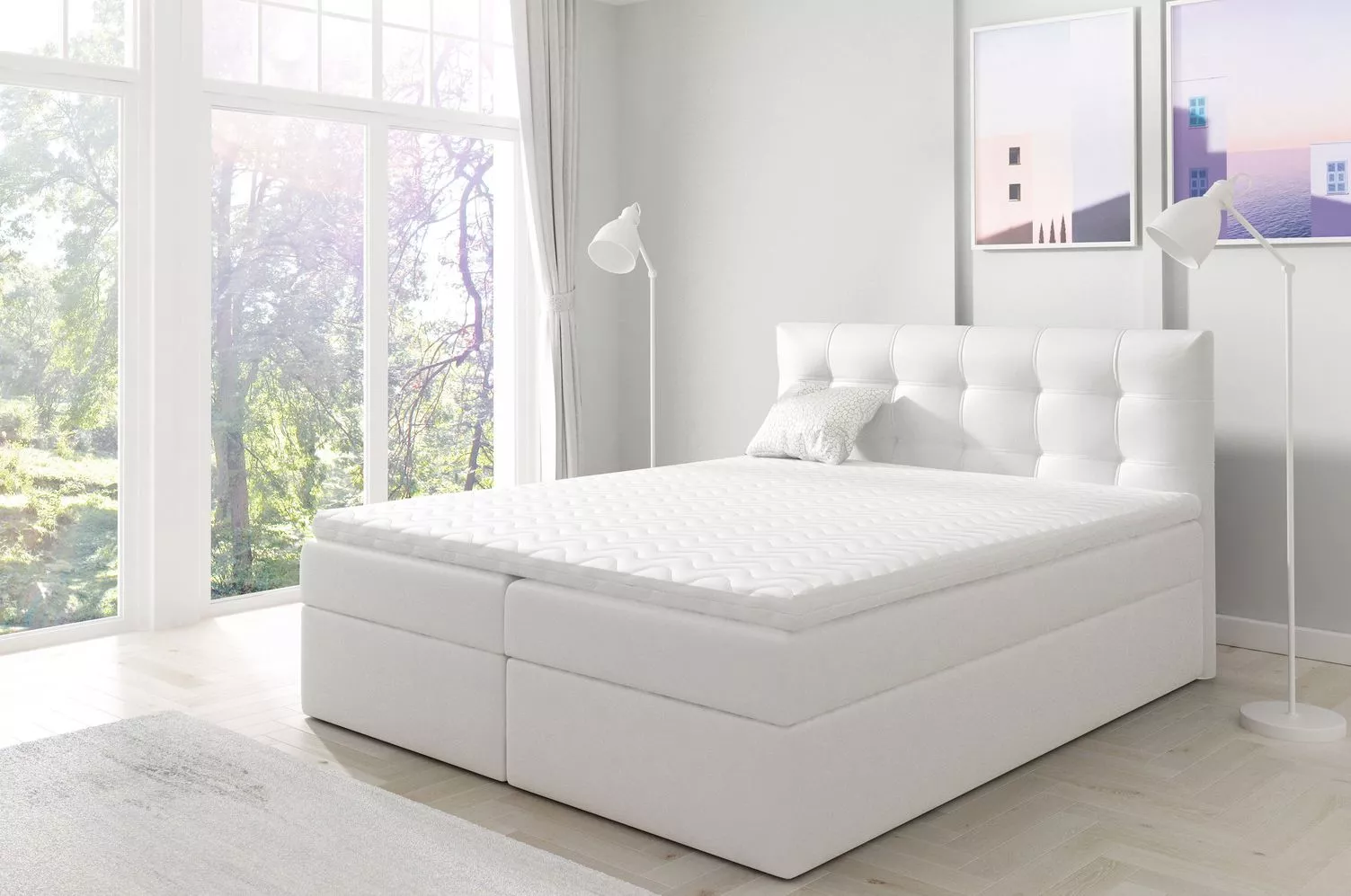 VÝPRODEJ - Čalouněná boxspringová postel 160x200 IVANA 1 - bílá eko kůže + topper ZDARMA