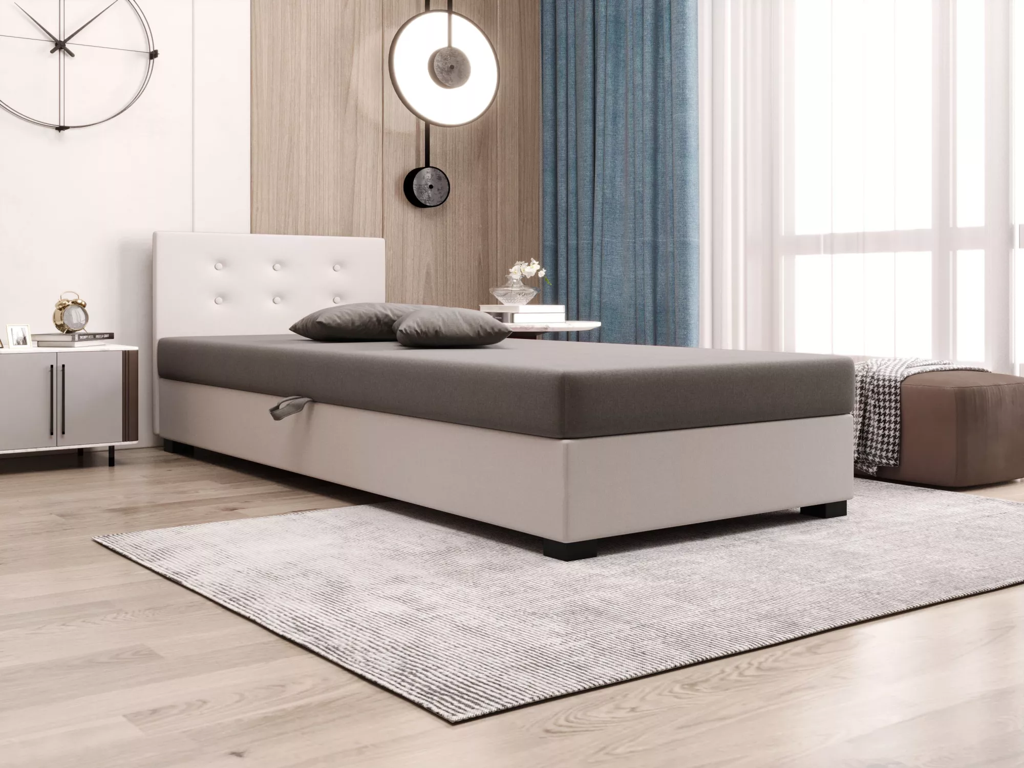 Jednolůžková postel 90x195 AJKA 1 - světle šedá / ecru