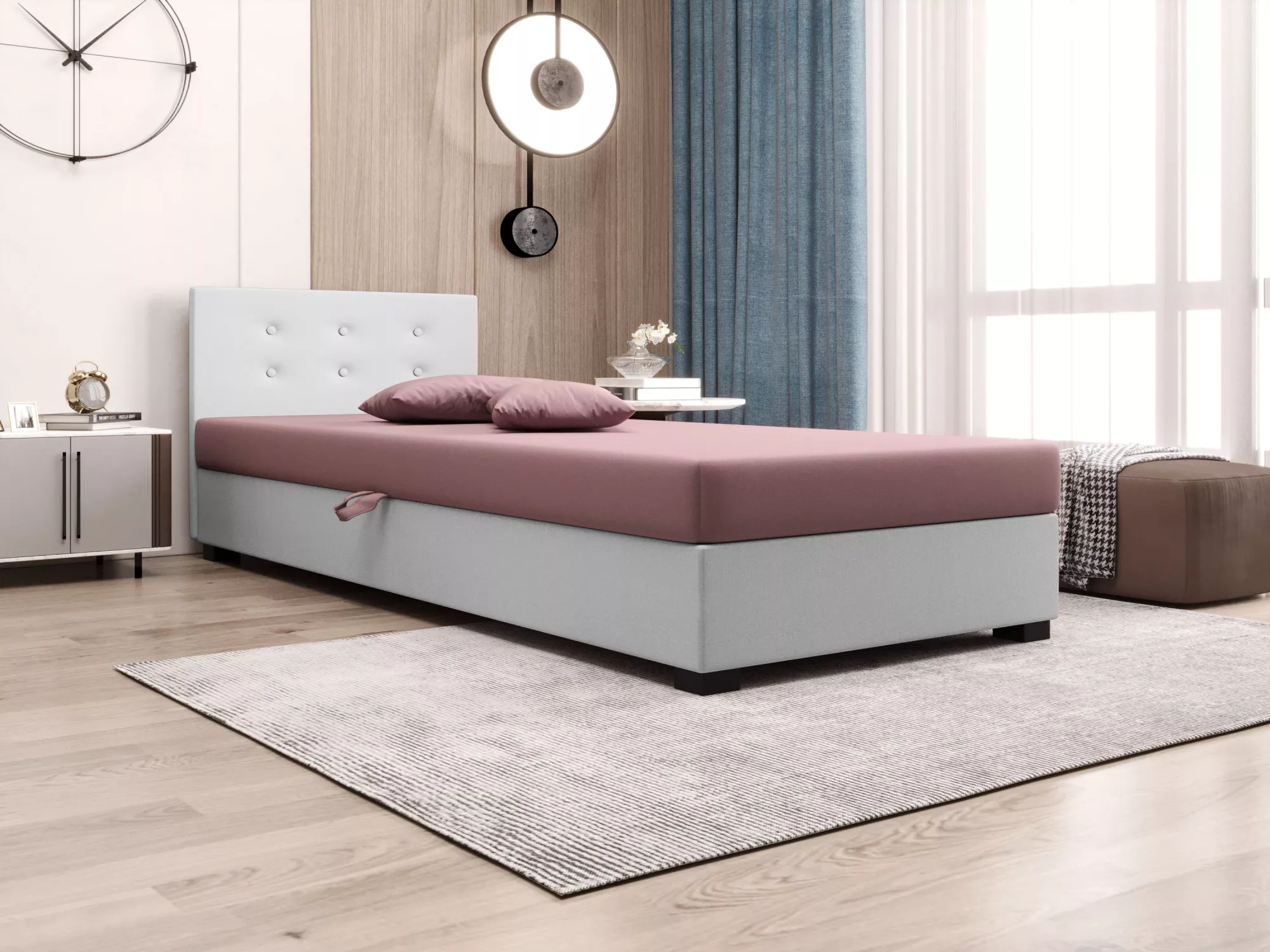 Jednolůžková postel 90x195 AJKA 1 na první pohled zaujme svým vysokým prošívaným čelem, které zabraňuje poškrábání a zašpinění zdi. Postel skvěle zapadne do každého studentského pokoje. Nechybí ani praktický úložný prostor pro uložení lůžkovin nebo sezónního oblečení.