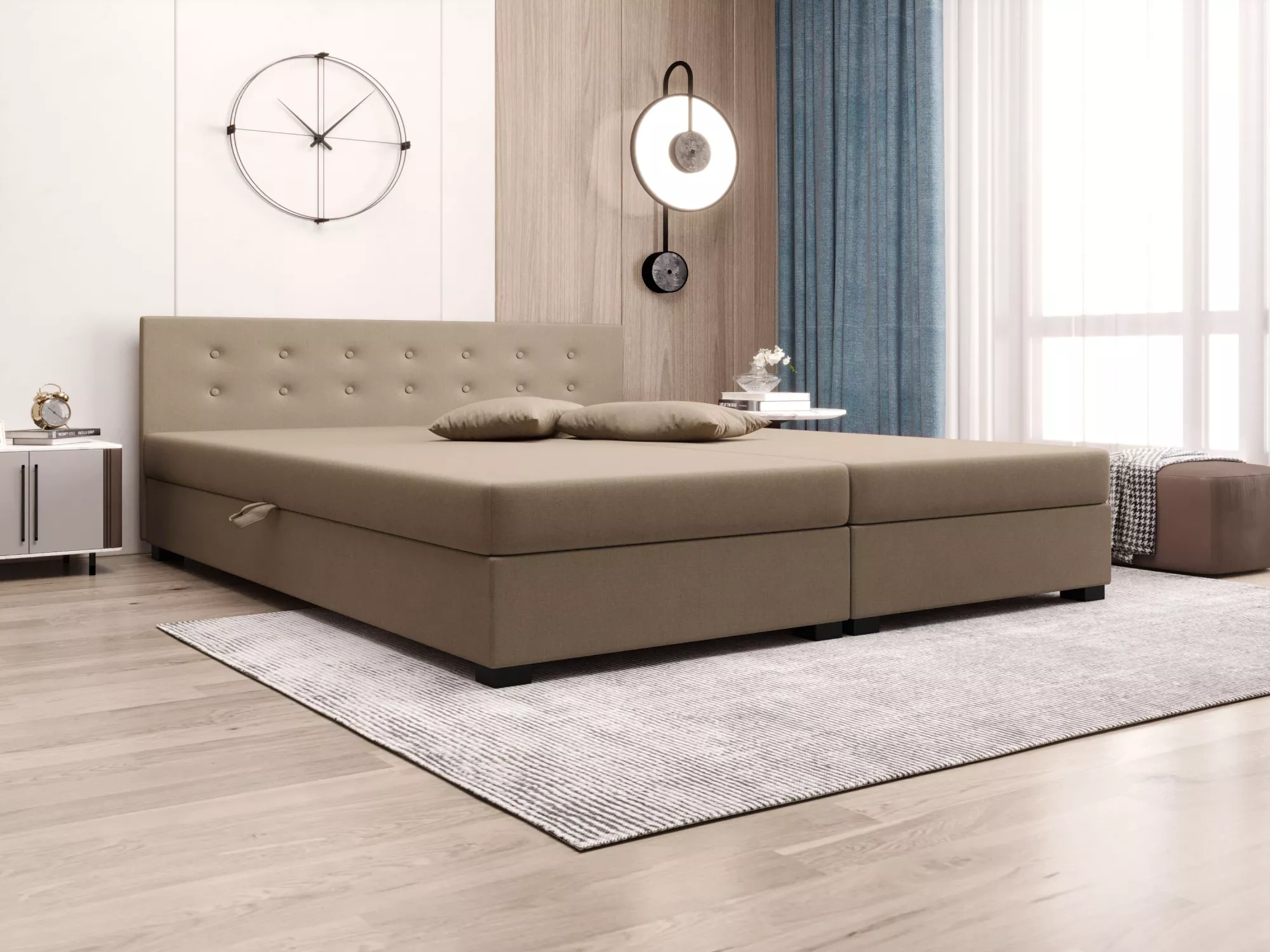 Manželská postel 140x200 AJKA DOUBLE 1 na první pohled zaujme svým vysokým prošívaným čelem, které zabraňuje poškrábání a zašpinění zdi. Postel skvěle zapadne do každé ložnice. Nechybí ani 2 praktické úložné prostory pro uložení lůžkovin nebo sezónního oblečení.